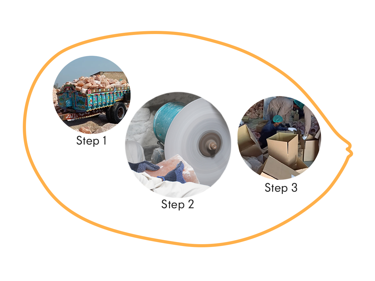 1. Acquire huge lumps of Himalyan Salt in our manufacturing plant.