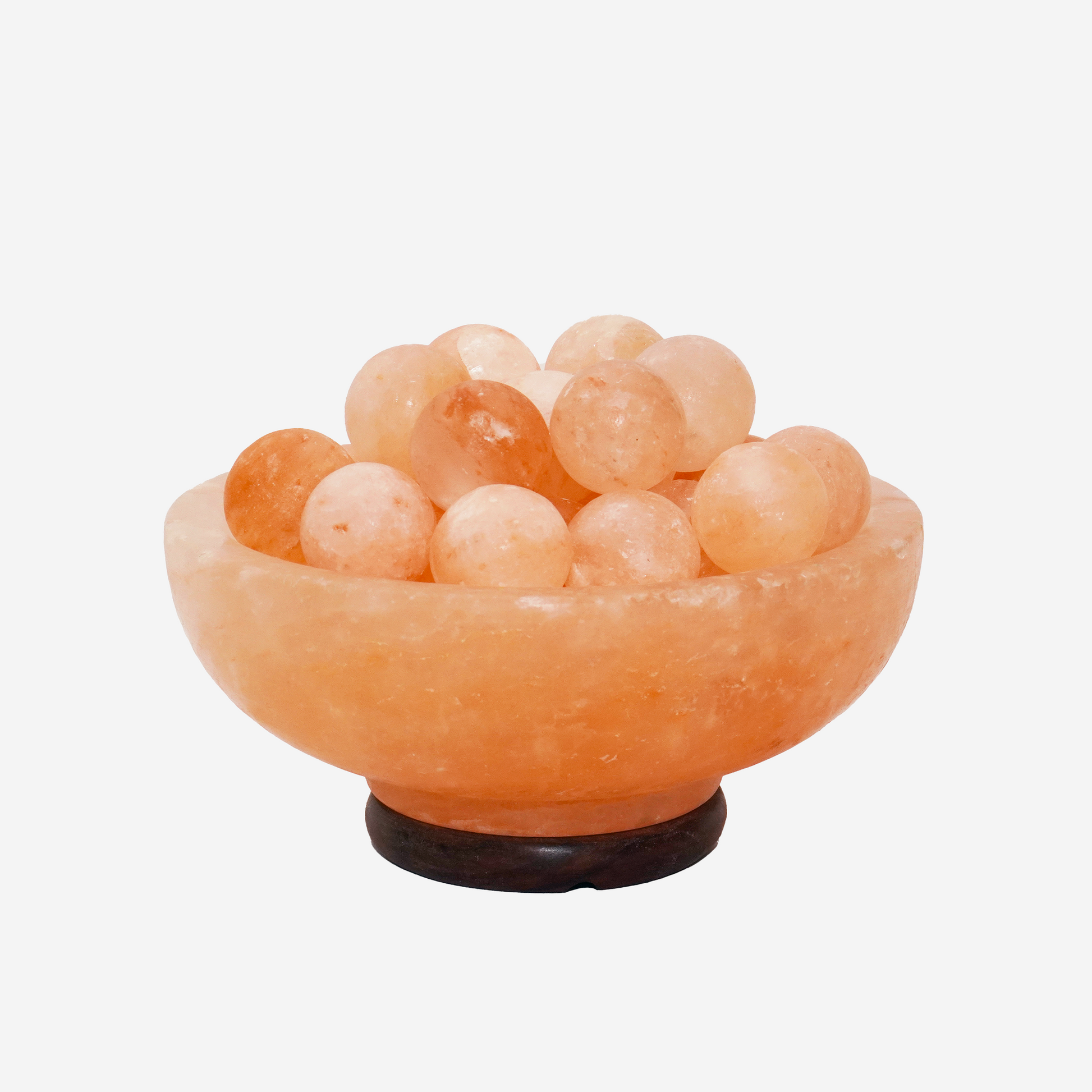 - Oversized fire bowl design filled with hand-carved Himalayan salt balls